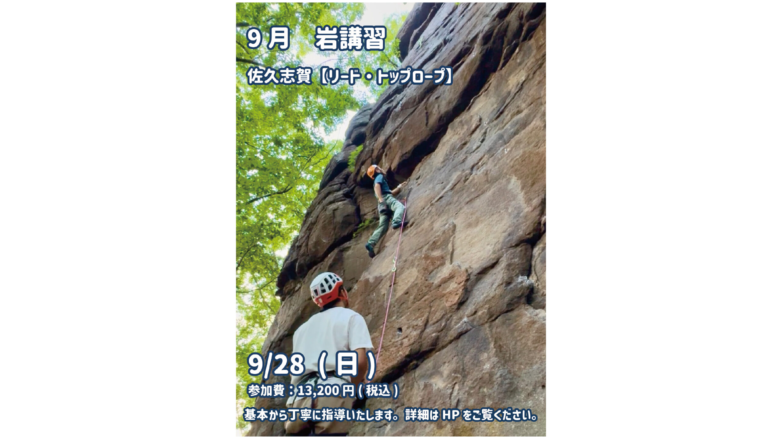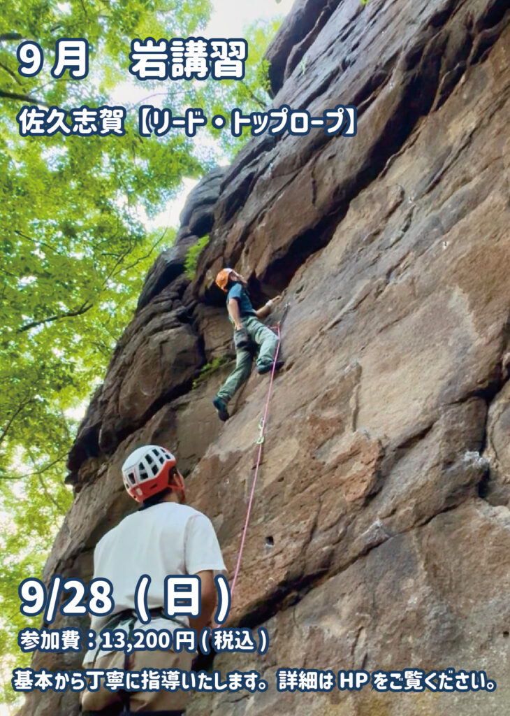 9月は長野県佐久市にある佐久志賀の岩場で、リードの岩講習を開催いたします!