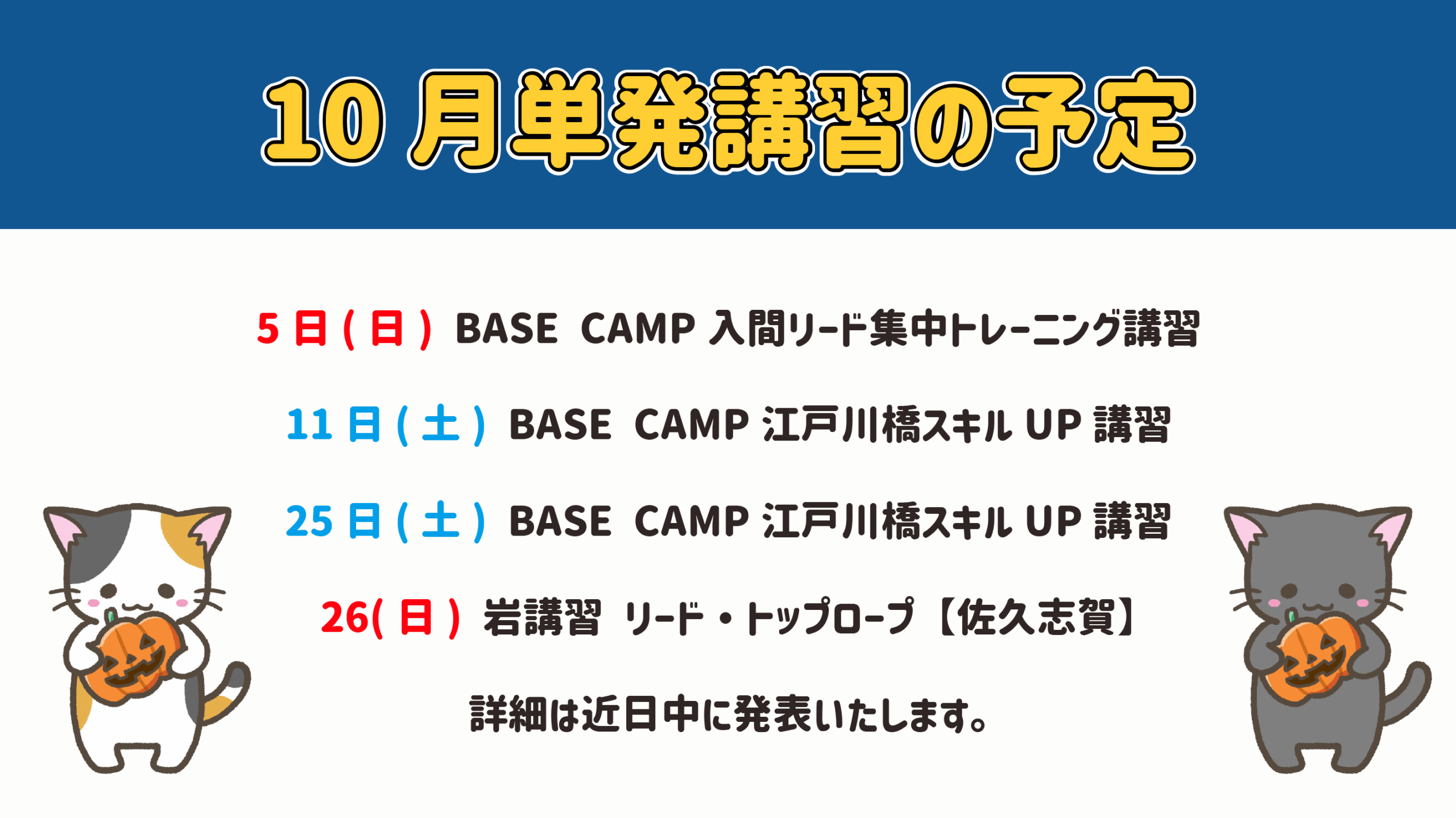 \10月の単発講習スケジュールのお知らせです🎃👻🍭😄/