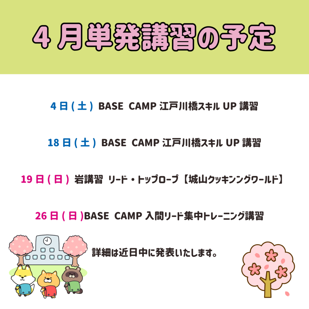 \4月の単発講習スケジュールのお知らせです🌸🏫😄/