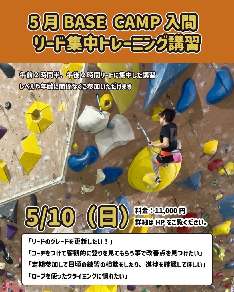 5月もBASE CAMP入間店でリードの集中講習を開催いたします。